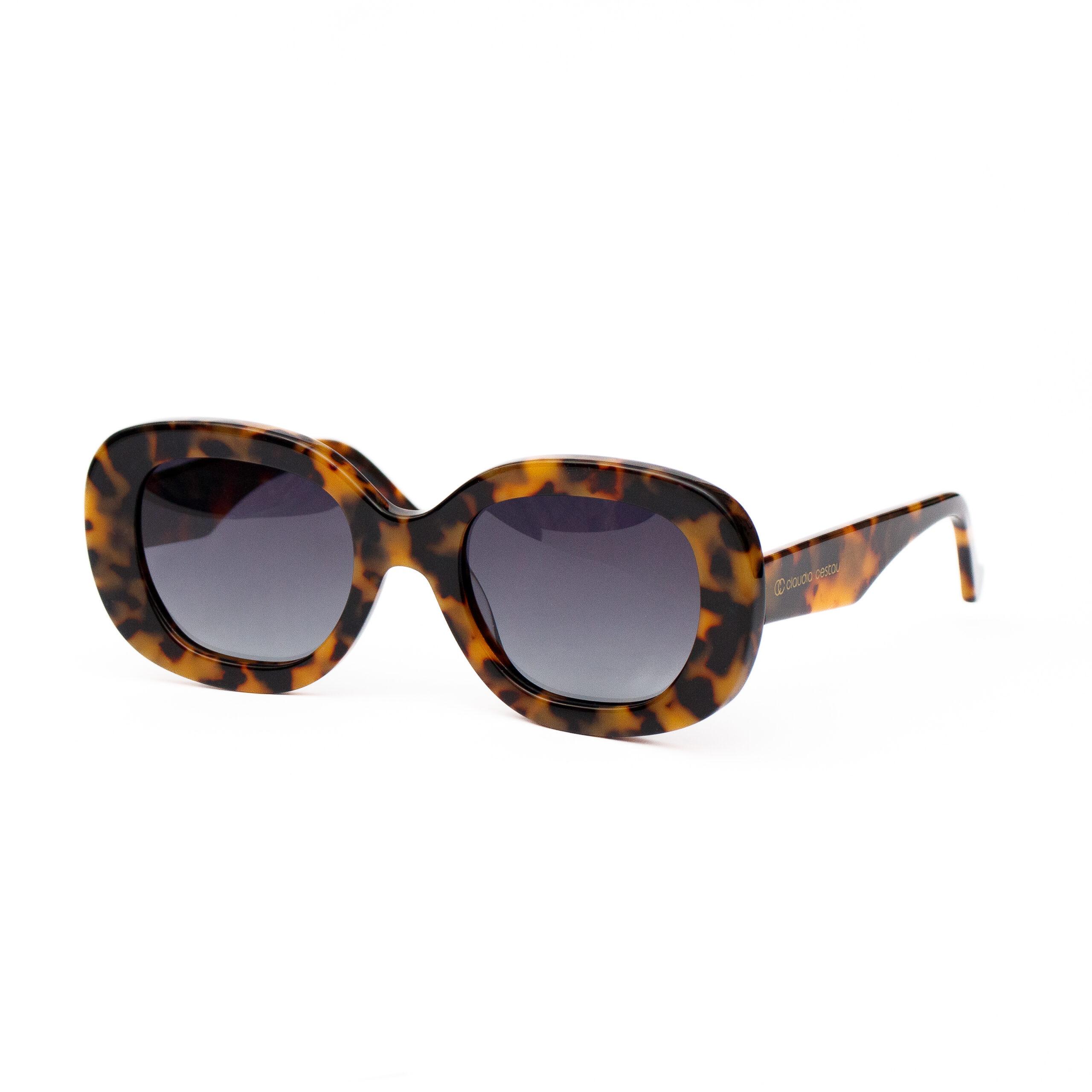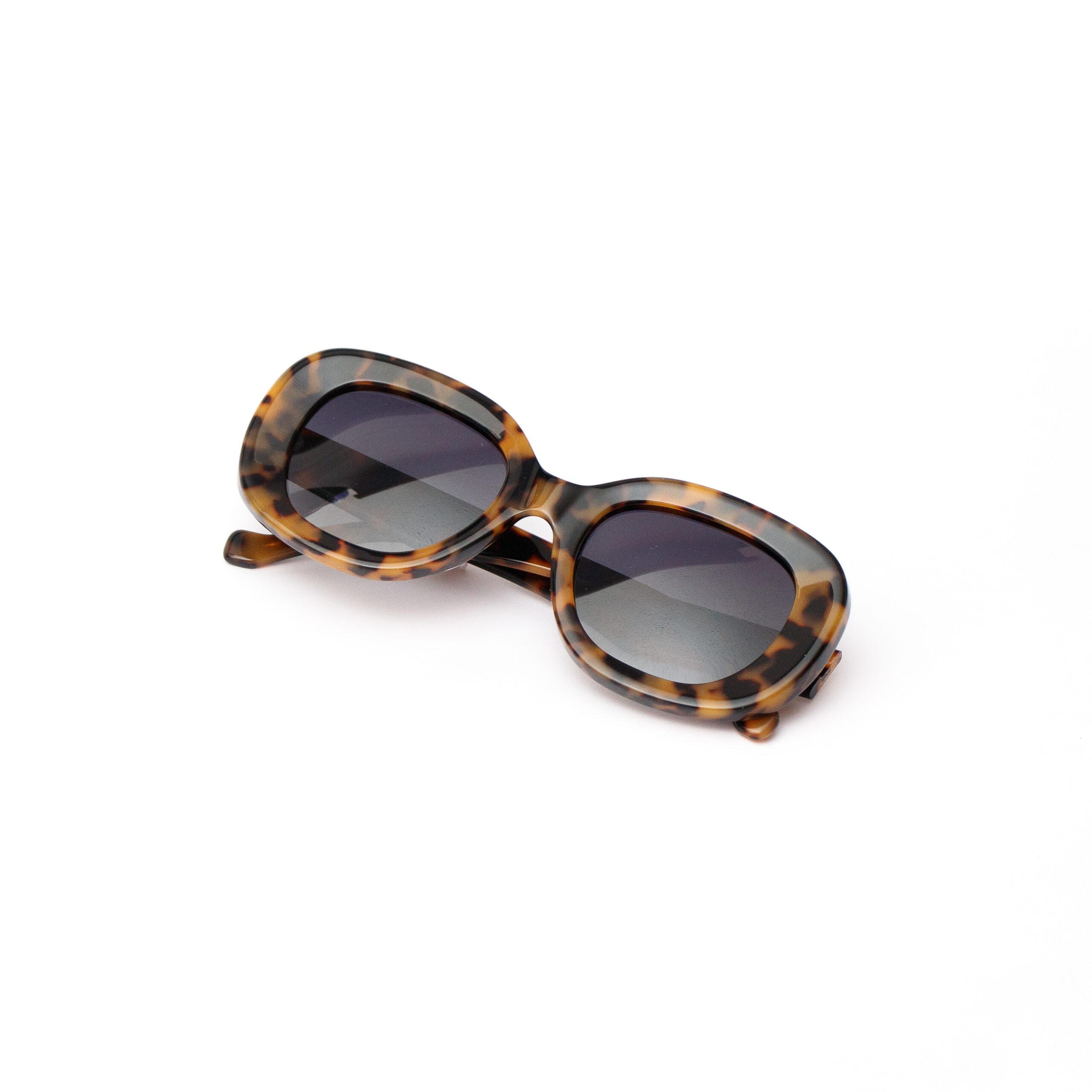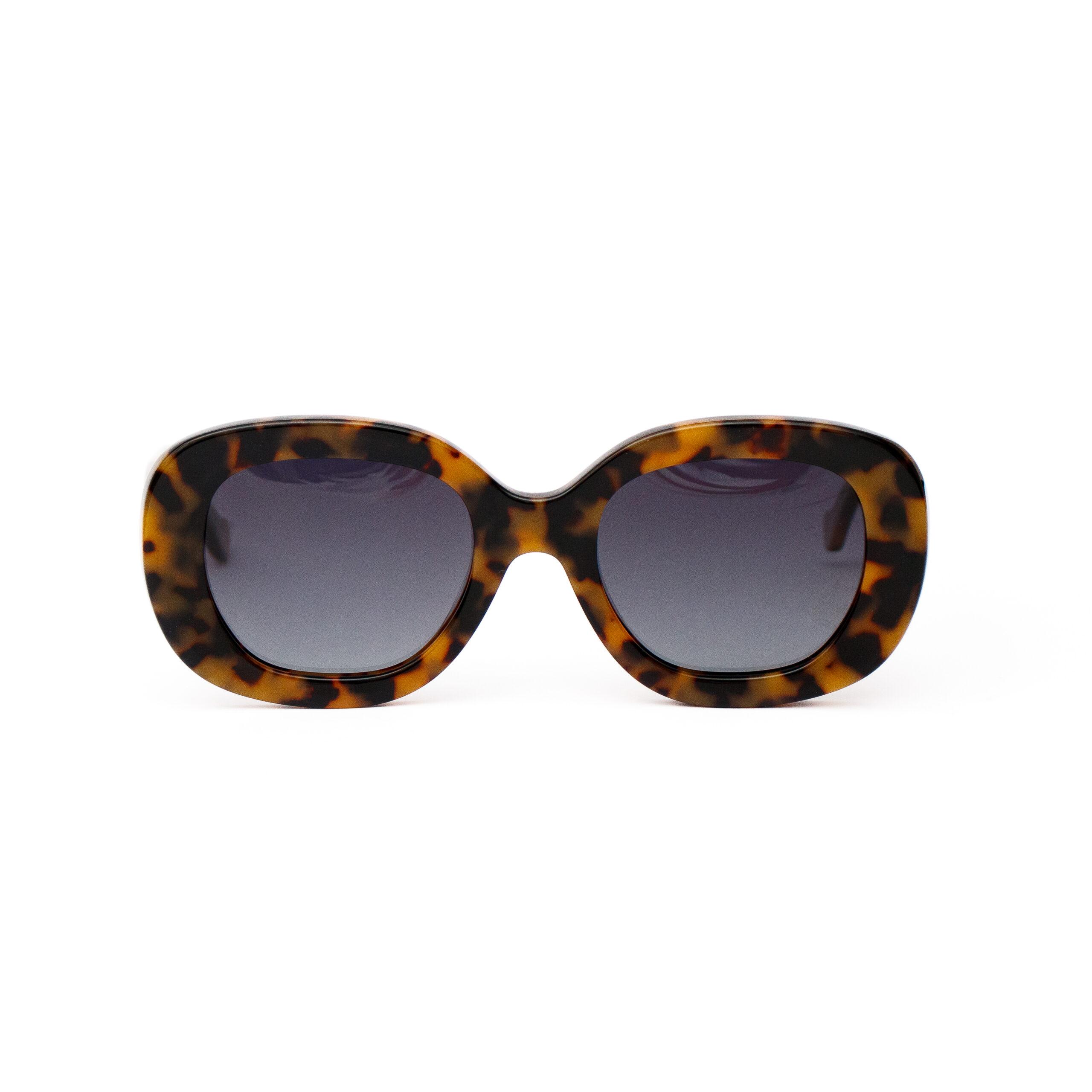 Lentes ovalados de sol de acetato, color tipo carey, gris degradado polarizado.