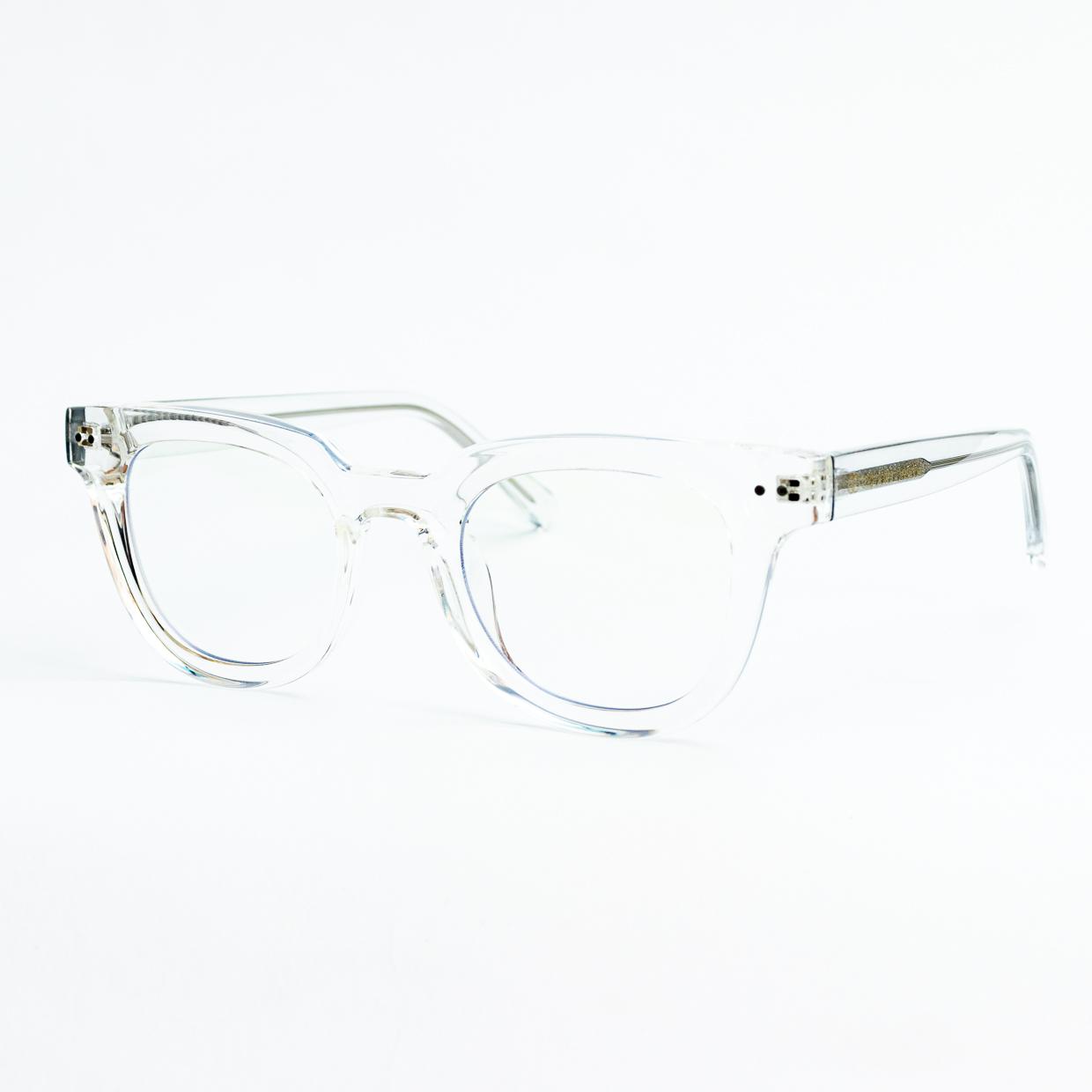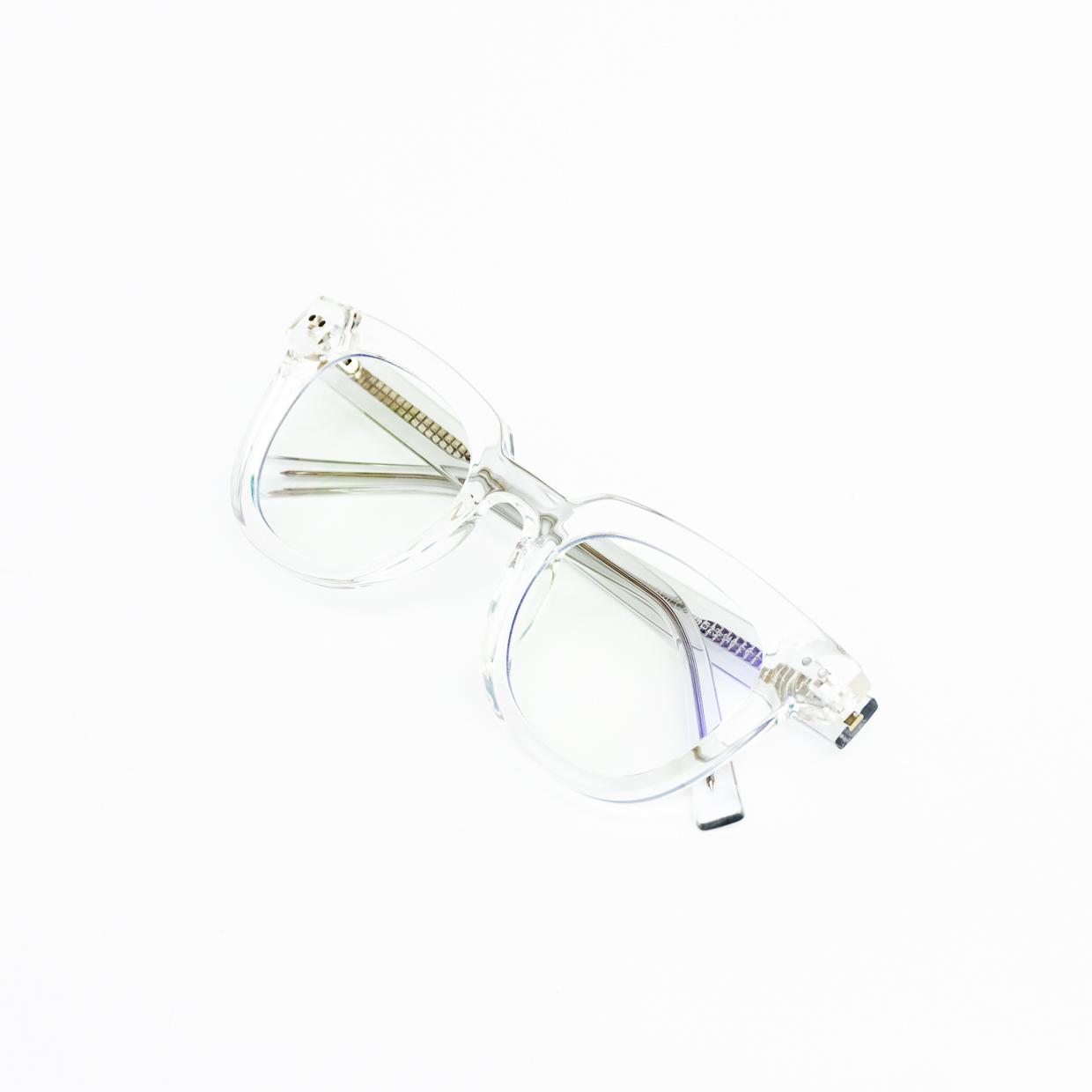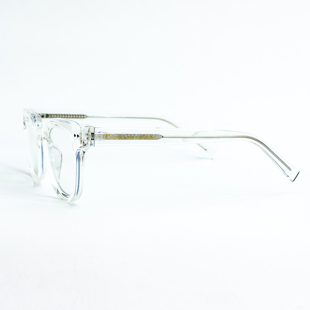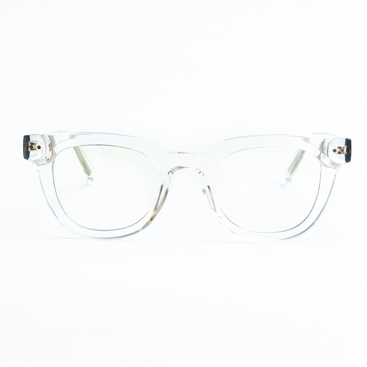 Lentes convencionales semicuadrados transparentes dos puntos a los costados del marco.