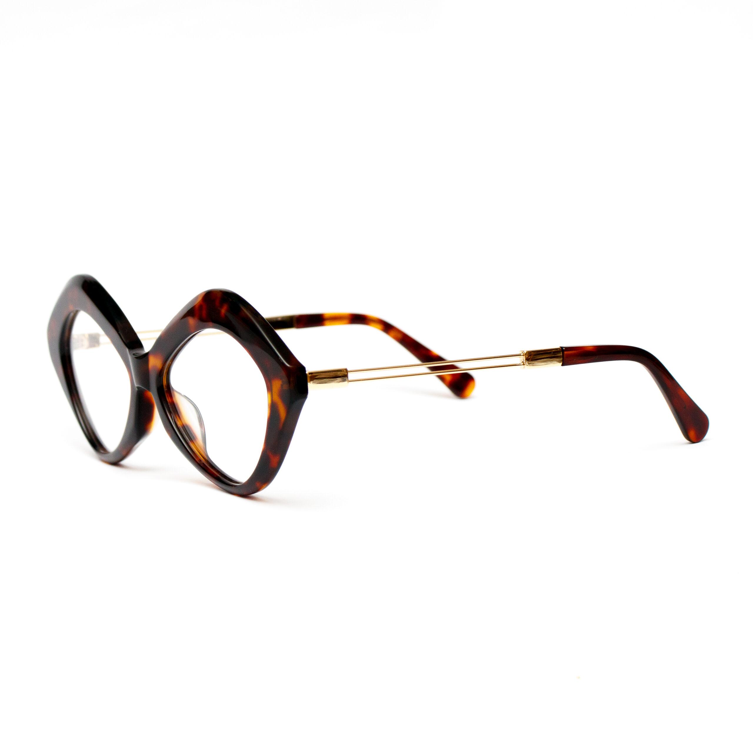 Lentes alargados, color tipo carey patas de metal dorado.